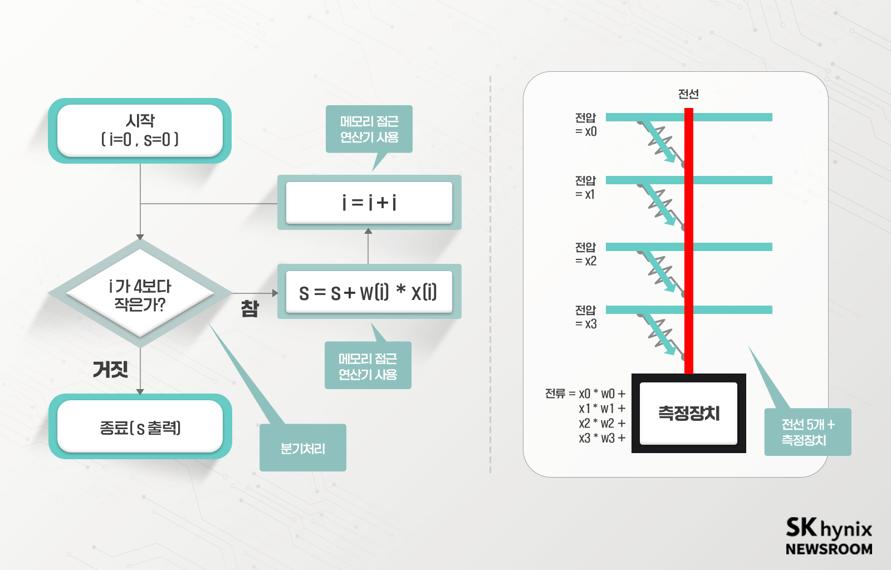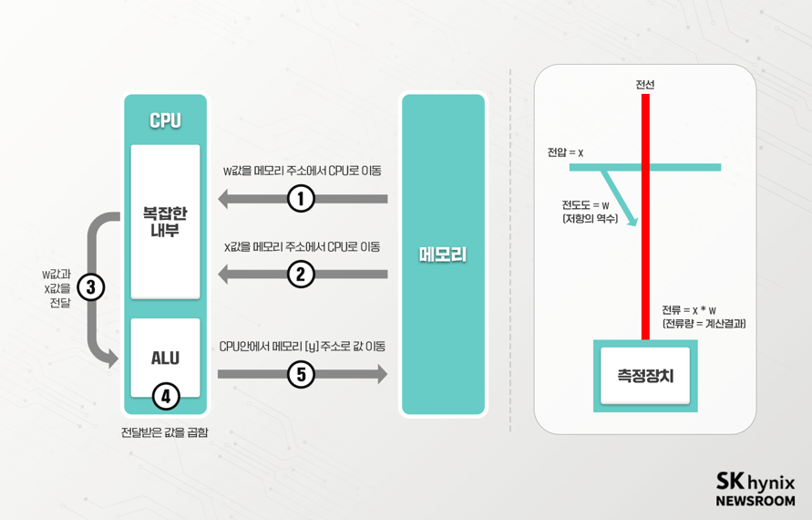 이 연산을 여러 번 한다고 생각해 보면, 좌측의 반도체-메모리 간의 연산을 4번 반복하는 것 대신, 우측처럼 단 한 번의 연산으로 훨씬 효율적으로 연산 수를 줄일 수 있다.
