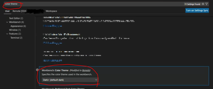 remote(서버) 선택시 ==> 앞으로 서버에 ssh code로 연결할 때마다 적용할 테마 변경